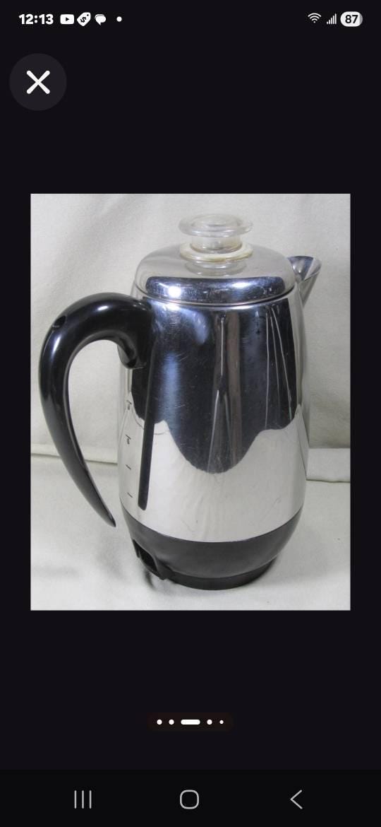 Original Model 138 with ceramic sleeve and clear OEM acrylic plastic perk top which is known to wear out so I am including a replacement glass perk top. Nice wide pour spout makes for nice pour.